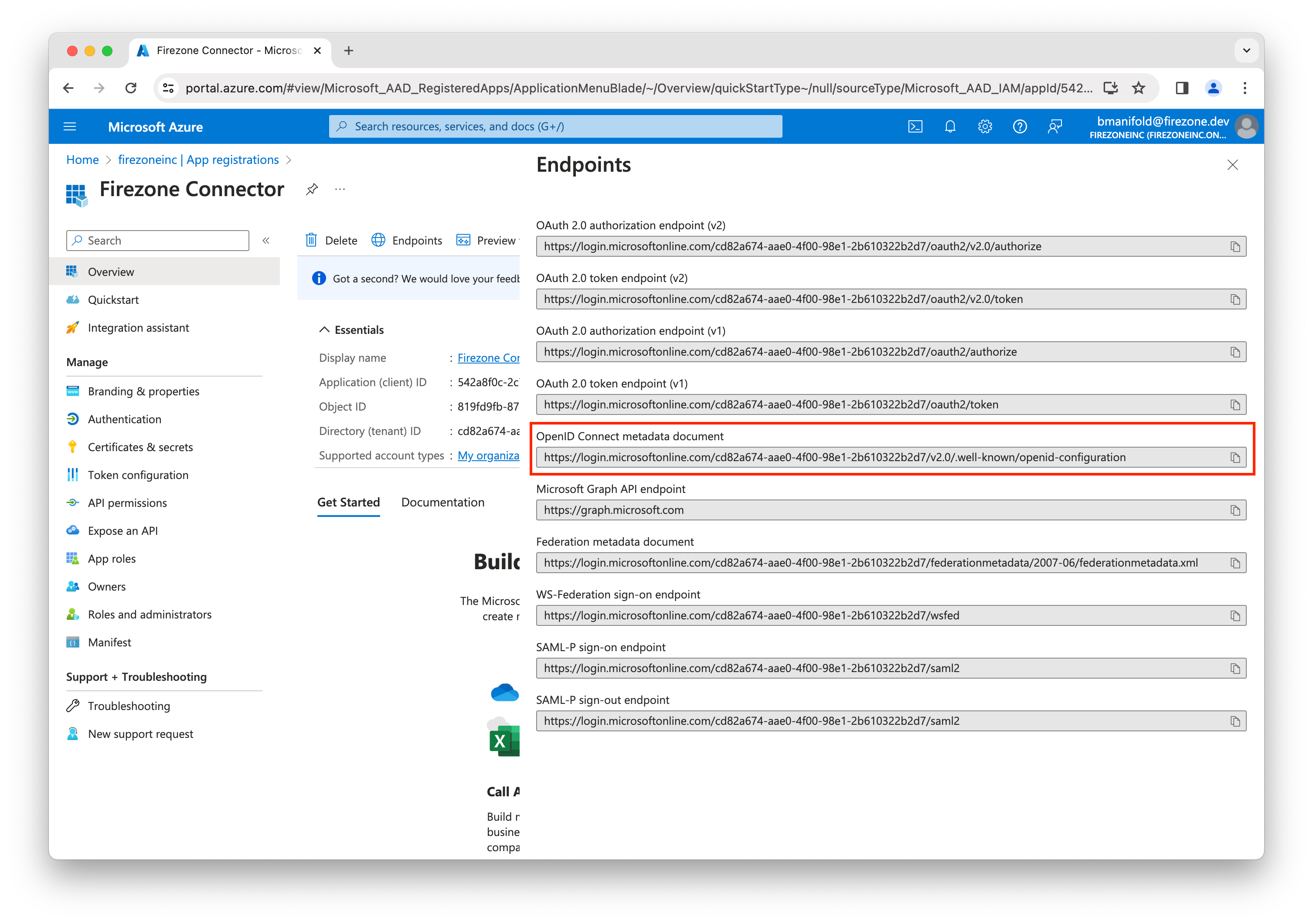 In the Firezone Connector app registration, click the Endpoints tab.